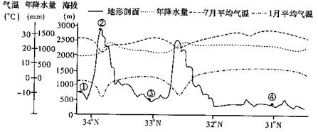A.①、③点 B.②、④点 C.①、④点 D.②、③点 参考答案: 本题解析: 本题难度:一般 3、单选题 下图是“沿106.5°E经线的地形剖面及相关气候资料图”,据图回答下列问题。 |