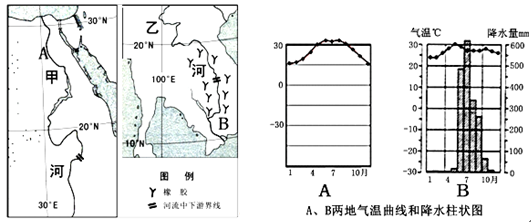 (3)分析A、B两地气候对当地农业发展的影响。(8分)