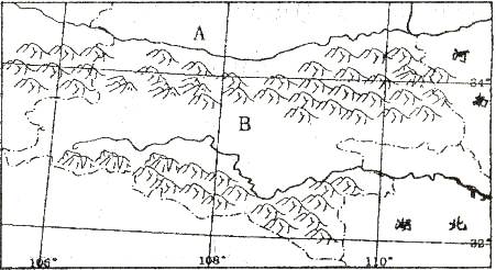 小题1:图中A地区位于渭河平原,主要粮食作物是小麦;B地位于江汉平原,主要粮食作物是水稻。故选A。