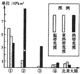 5、单选题 下图是世界各大陆荒漠构成状况图。渎图回答1~2题。