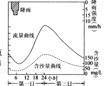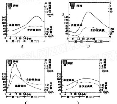1、单选题 图11为流域内为森林覆盖的某河流在暴雨中呈现的河流流量和含沙量曲线图。假设暴雨来临前,该流域内的森林已经全部被砍伐,则该河流的流量及含沙量曲线应为