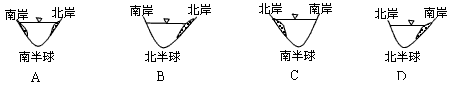 5、单选题 ? 下图中,由于地转偏向力的影响,造成平直河道两岸冲刷与堆积的差异(阴影部分为堆积物),若河流由西向东流,则正确的图示是