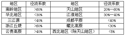 D、在其他条件相同的情况下,径流系数山区大于平原地区