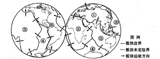 5、综合题 读世界六大板块分布图,回答下列问题。(15分)