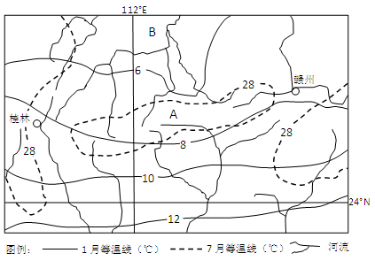 【小题1】根据图示的等温线分布可知,该区域位于我国南方地区,1月份等温线走向大致与纬线平行,其形成的最大因素为纬度,故B正确。