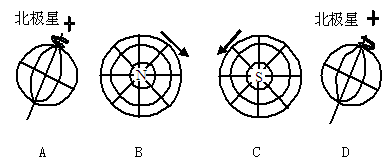 ①地球各地出现极光现象?②地球磁针不能正确指示方向 ③卫星电视信号中断?④南北极出现极昼、极夜现象 A.①② B.①③ C.②③ D.③④ 参考答案: 本题解析: 本题难度:一般 2、单选题 下列现象,与太阳辐射有关的是 参考答案:D 本题解析:地热发电来自地球内能;两极地区的极光是由于太阳活动形成的;潮汐现象是由于天体引力而形成的;煤炭、石油资源是历史时期的生物光合作用利用太阳能合成生物能经过漫长的地质演变而形成的。 本题难度:一般 3、单选题 图中正确表示地球自转方向的是( ) 参考答案:A 本题解析:从侧面来看地球自转的方向为自西向东,从北极点来看自转方向为逆时针,从南极点来看自转方向为顺时针,所以A正确。 本题难度:一般 4、单选题 下图中圆弧EF为某一纬线圈的局部,O点为该纬线圈的圆心,E、F两点分别是某日晨线和昏线与该纬线圈的交点,E点所在经线为165°E,P为线段EF的中点。回答下列各题。 |
