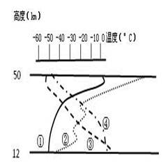1.根据图示的纵坐标,该大气层的高度位置可判断,该大气层为平流层,平流层的气温随高度升高而升高,在平流层顶,气温约为0°C,故①曲线符合。
