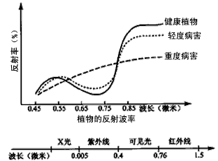 3、多选题 在遥感技术中,可以根据植物的反射波谱特征判断植物的生长状况。读图,回答1—3题。