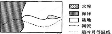 小题1:读图,根据最冷月等温线弯曲情况,冬季陆地等温线向南凸出,说明位于北半球。水库位于北纬30°-40°大陆西岸,属于地中海气候区。根据表格数据,1月(冬季)水量盈余率较高,大于1,说明流入量大于流出量,河水补给水库水量,说明降水多,7月(夏季)盈余率小于1,说明流出量大于流放量,水库补给河水,降水较少,符合地中海气候的特征,D对。A、B、C错。