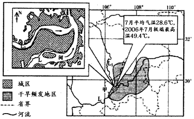 (2)甲城市附近地区,在7、8月份常出现旱情,试分析形成的主要原因。