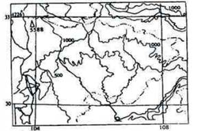 本题解析:根据经纬度分析,该图应为四川盆地及北部山区。因当地属亚热带,故山麓处的自然带应为常绿阔叶林带。