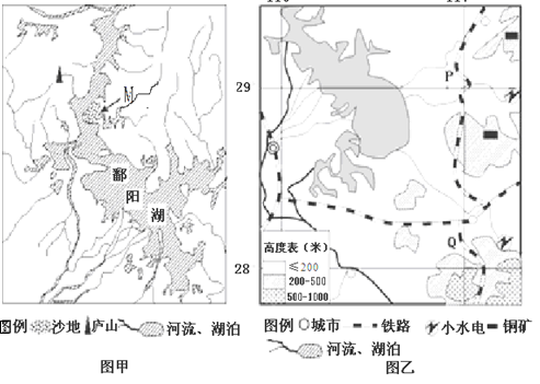 材料二?图乙示意鄱阳湖南部地区,PQ铁路线的建成对该区域的铜矿开采、冶炼产生了明显的促进作用。?