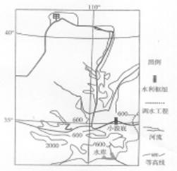 (2)图中,甲在黄河的上游,为河套平原,乙地黄河的中游,渭河平原。自然条件从降水、光照、热量、土壤、地形、水源等描述,其农业发展的共同自然优势:地处河流沉积形成的平原,土壤肥沃;地形平坦;有河流经过,充足的灌溉水源;地处西北,光照充足。