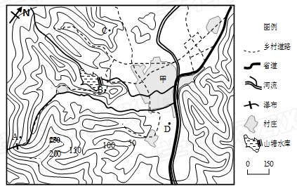 A.东北向西南 B.东南向西北 C.西北向东南 D.西南向东北 2、单选题 读我国江南丘陵某地区等高线地形图,判断小题。 3、单选题 下图为我国某地等高线地形图,甲村庄多明清建筑,是重要的旅游景观。读图回答下列各题。 |
