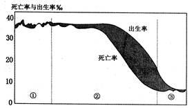 (3)③阶段的人口增长特征:三低。故人口增长缓慢,出现老龄化现象严重,由于老年人口的死亡率高,使该阶段的人口死亡率高。