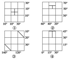 2、四幅经纬网图中,分别绘有两条粗短线,符合同一图中两条粗短线实际距离相等的是