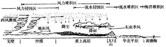 2、单选题 下图是黄土高原外力作用示意图,读图完成1~2题。