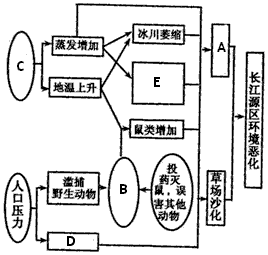 4、填表题 下图为长江源区环境恶化过程示意图,按相关关系将图中的代码分别填入各项前的括号内。