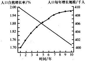 1、图示时间段,人口自然增长率降低的百分点和人口增长的总数分别约为