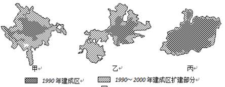 式中c指城市的紧凑度,A指城市面积,P指城市轮廓周长。下表为我国三个城市的形态紧凑度变化资料;读下列图表,完成下列各题.