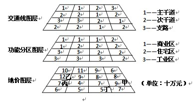 A.节约建筑用地 B.缓解交通压力 C.降低建筑耗能 D.扩大用地规模 2、单选题 城市的迅速发展会改变土地利用方式,并对自然环境要素产生不同程度的影响。图中A、B、C、D可能是大城市、小城市或郊区。读图回答题。 3、单选题 图为某城市部分地区经过数字化处理的“交通线、功能分区、地价”图。回答下面2题。 |