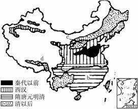 小题1:在历史上,人类生产活动越深入的地区,植被遭到的破坏也越严重。秦代以前和西汉时期,我国北方地区的大部分和西北地区的绿洲地带,是当时我国人口密集、经济发达的地区,且为我国的政治中心所在地。这些地区人口众多,人地矛盾尖锐,对植被的破坏严重。其中毁林开荒、营造宫殿和陵墓等行为是使当地森林植被遭到严重破坏的主要原因。