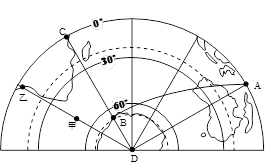 4、单选题 当下图为西半球,且为昼半球时,回答小题。