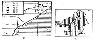 小题1:影响甲、乙两省(区)人口分布的主要自然条件分别是