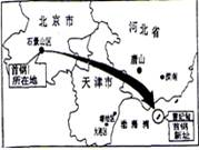 2、单选题 2005年2月18日,国家发改委批复首钢分阶段压缩北京地区钢铁生产能力并最终把涉钢系统全部迁出北京的方案。读该图,完成问题。