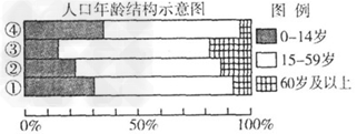 3、单选题 读近三十年来我国某省四个不同年份的人口年龄构成示意图,在四个年份中,人口增长速度最快的是