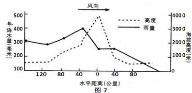 2、单选题 读“某山地南北坡年降水量”图(图7),回答17—18题: