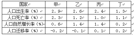 A.甲 B.乙 C.丙 D.丁 4、综合题  阅读材料,分析回答下列问题。 5、单选题  下表是我国东南沿海经济发达区某新兴城市1991—1998年人口数量的变化,回答下列各题 |