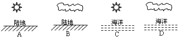 (1)D、C两处相比处_____________气温较高,__________处气压较高。A、D两处相比,白天_______