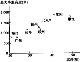 1、据上图反映的变化趋势,对下列各地最大降温高度的推断,正确的是