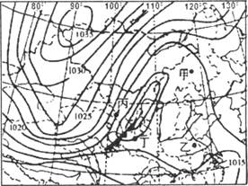 【小题2】读图可知,甲、乙两处等压线比较稀疏,风力较弱,空气流动性差,不利于污染物的扩散;丙、丁处等压线密集,风力强,有利于污染物的扩散。