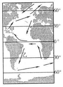 1、单选题 读“大西洋洋流分布示意图”,回答题。