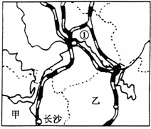 1.图中①城市2.图中甲、乙两省适宜发展的特色工业是