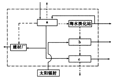 1、单选题 下图示图某雏形生态工业园区的产业链。箭头表示物质、能量流动过程,其中虚线箭头表示副产品或废弃物的流动。完成1~3题。