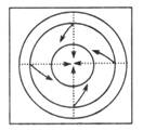 小题1:根据图示水平气流的方向:由四周流向中心,且风向向右偏,判断为北半球的气旋。