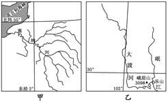 小题1:图示河流建有众多的大坝,用于发电。但乙图大坝的发电使用年限大大低于设计年限,其原因主要是