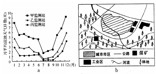 (1)a图中混浊天气日数最多的月份是___________。(2分)
