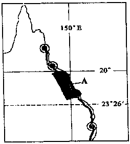 (2)图中区域所在国家的首都是?,该国所在大陆矿产资源丰富,被称作?,农牧业发达,是世界上出口?最多的国家。(3分)