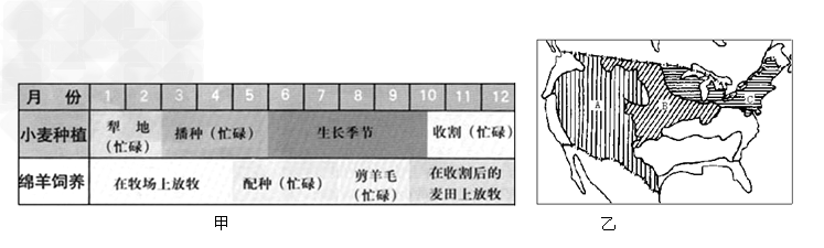 (3)乙图所示D农业地域的主要农产品是____________ ,___________。