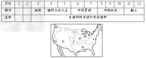 3、综合题  读美国农业带分布示意图,回答下列问题。
