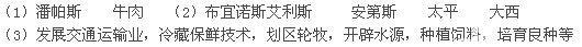 (1)图中主要农业畜牧区为阿根廷的著名?草原,是目前世界上主要的?(畜产品)出口基地。 (2)A城市的名称是?;B是世界上最长的?山脉。该大陆西侧是?洋;大陆东侧是?洋。 (3)该地区畜牧业的发展,为我国内蒙古牧区提供了哪些可以借鉴的经 验:??;? ;?。