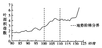 A.热带雨林带 B.温带草原带 C.温带荒漠带 D.热带草原带 4、单选题 下图是我国北纬30°植被叶面积指数变化示意图(中面积指数是指单位土地面积上植物叶片总面积占土地面积的倍数)。读图,回答下列各题。 |