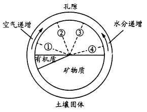 2、单选题 土壤空气和土壤水分贮存于土壤孔隙中,两者体积组成比例常受外界因素影响而此消彼长。下图中虚线①表示土壤中空气和水分所占比例约为4%和46%。读图完成1~2题。