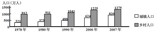 4、单选题 读某地区城镇人口与乡村人口数量变化统计图。完成下列问题。
