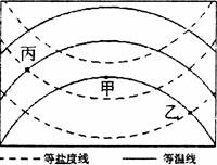 5、单选题 下图为某海域等温线和等盐度线示意图(甲处有洋流经过),回答: