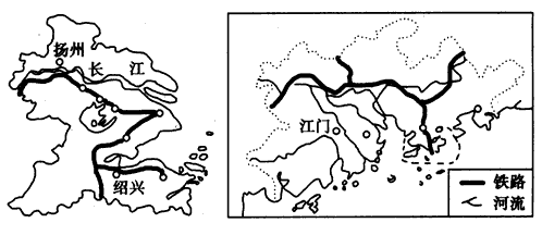 2、综合题 下图分别是我国长江三角洲和珠江三角洲经济区示意图,读后回答问题。